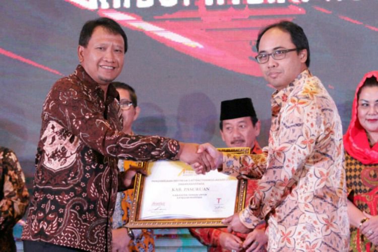 Kedua penghargaan tersebut diberikan langsung oleh Deputi Bidang Pengembangan Destinasi dan Industri Pariwisata Kementerian Pariwisata RI Dadang Rizki Ratman dan Dirjen Kependudukan dan Catatan Sipil Kemendagri RI Zudan Arif Fakrullah kepada Bupati Pasuruan Irsyad Yusuf dalam acara Indonesia Attractiveness Award 2017, di Hotel Westin, Jakarta, Jumat (29/09) malam.