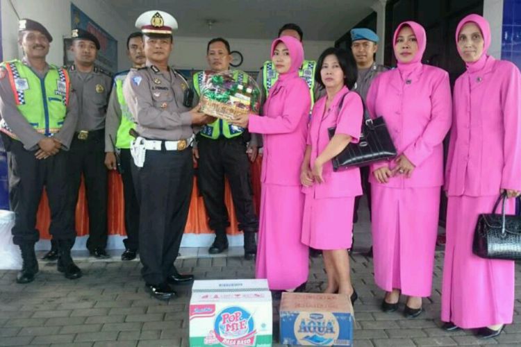 Merdeka.com, Pasuruan - Untuk memberikan dukungan dan semangat kepada para petugas yang tengah berjaga di sejumlah pos pengamanan, pantau maupun pelayanan, Ibu-ibu Bhayangkari Cabang pasuruan melakukan kasi bagi-bagi bingkisan kepada para petugas.